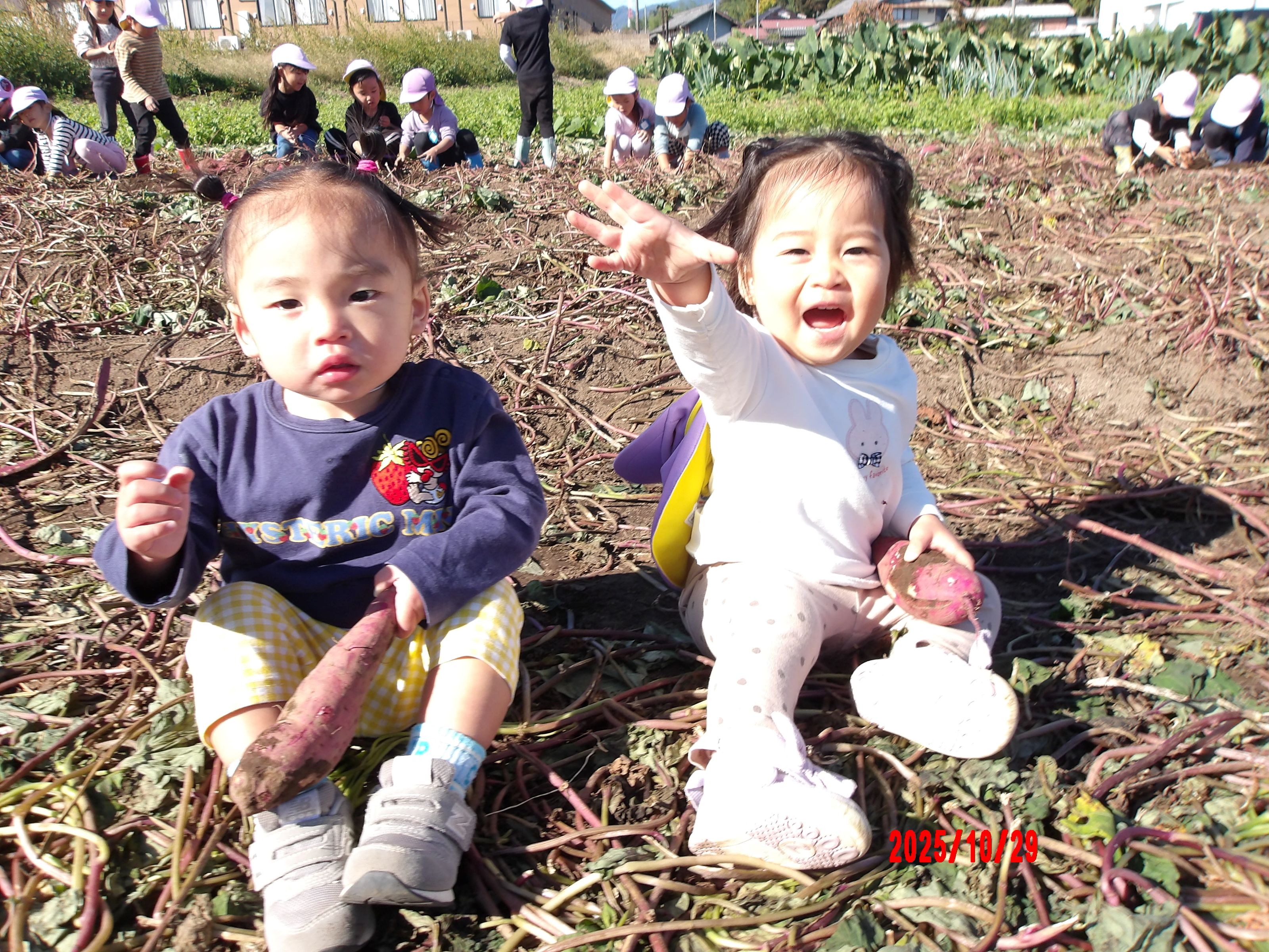 小さいクラスのお友だちは大きいお芋に興味津々♪♪お芋を抱っこして不思議そうに見つめているお友だちもいて、そんな姿がとっても可愛かったです♡