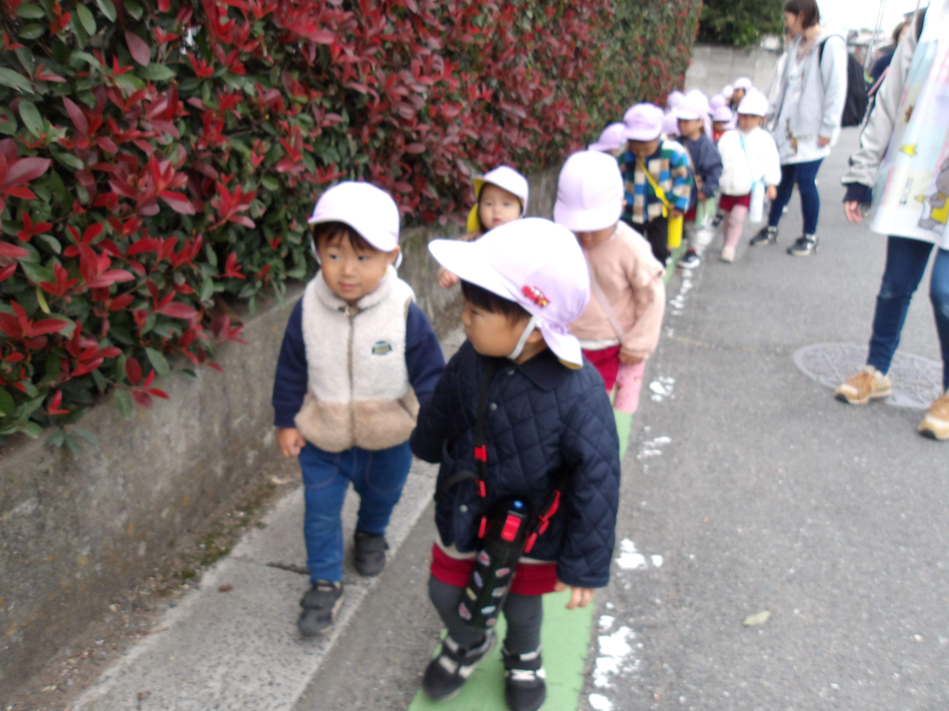 毎年どこに行くかはそれぞれなのですが、今年はきく組さんは文化センター、あやめ組さんとばら組さんは見晴らし公園、もも組さんとさくら組さんは木戸集会所にお散歩に行ってきました!(つくし組さんはお散歩の予定だったのですが、風が強くて断念…。天候の関係で予定とは違う場所になってしまったクラスもありました…涙)